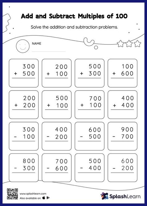 There are many online resources that offer free add and subtract multiples of 100 worksheets. These worksheets are great for home or classroom use, as they are fun and engaging for children. They can also be printed and used for practice. Additionally, many online resources allow you to customize the worksheets to suit the needs of the child.