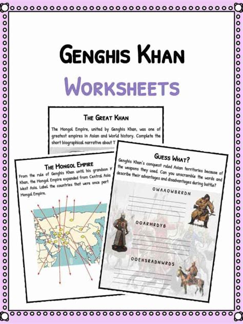 The Genghis Khan Worksheet PDF is a great way to introduce students to the Mongol Empire and its leader. Through the interactive activities and information included in the worksheet, students can gain a better understanding of the Mongol Empire, its culture, and Genghis Khan's legacy. By using the worksheet, students can make learning about the Mongol Empire fun and engaging!